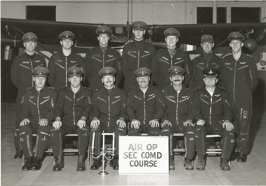 Note: The pic was taken in the hangar at Flewin Field Shilo. Note that all are wearing the army flying badge.